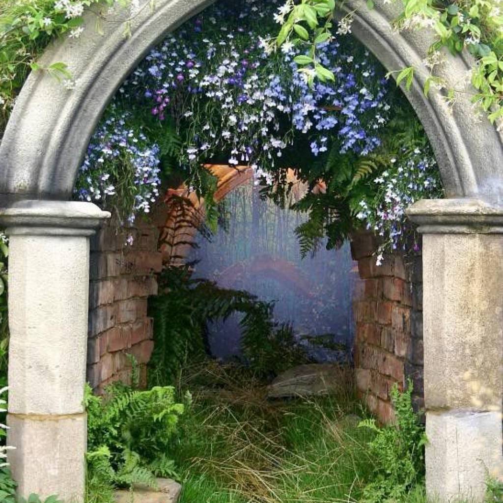 Каменная арка круглой формы разнообразит ландшафтный дизайн садового участка