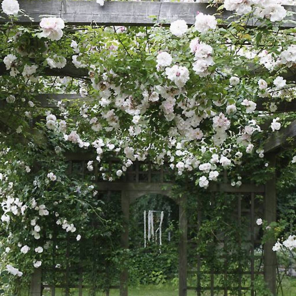 Клематисы – распространенные растения, которые выращивают для образования стенок и крыши пергол, арок, живой изгороди. Цветы могут быть разных оттенков. Особенно эффектны белоснежные звездочки.