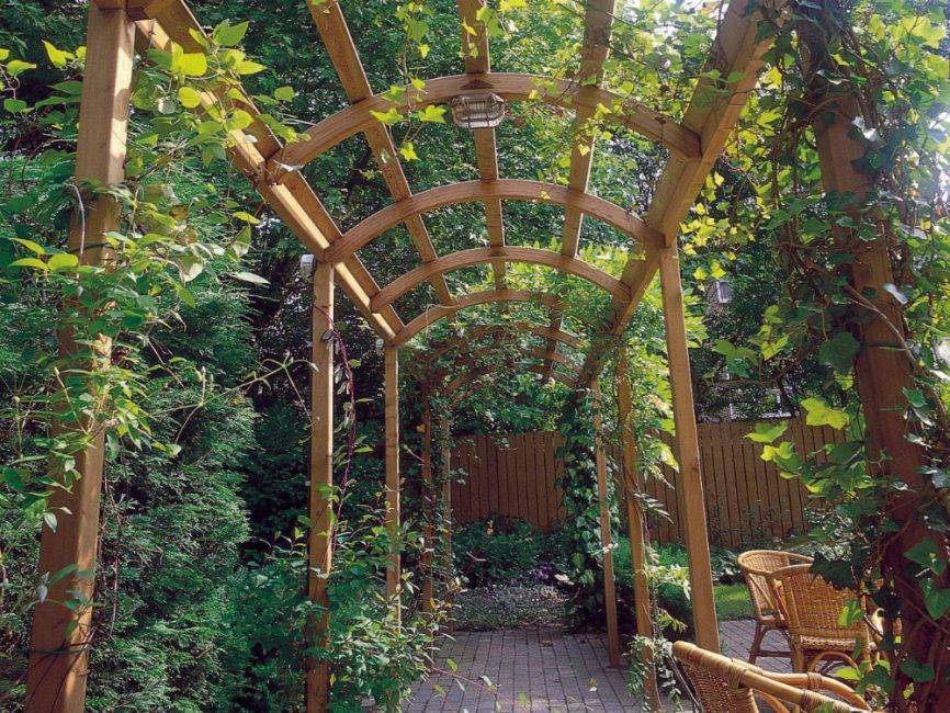 - Небольшая аркада (пергола) сможет заменить беседку.