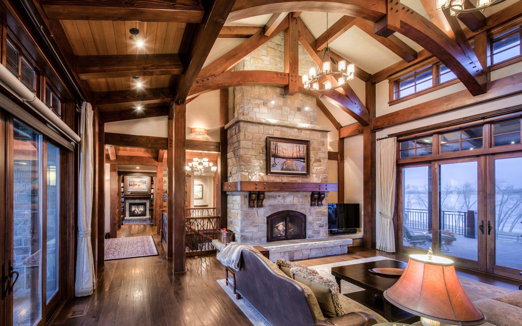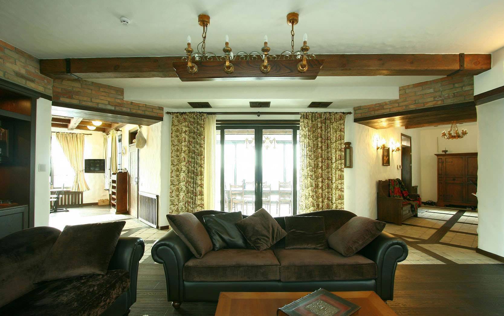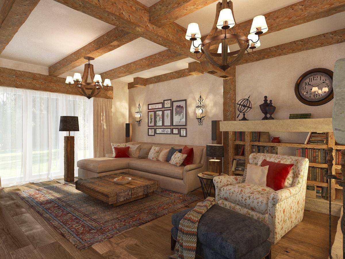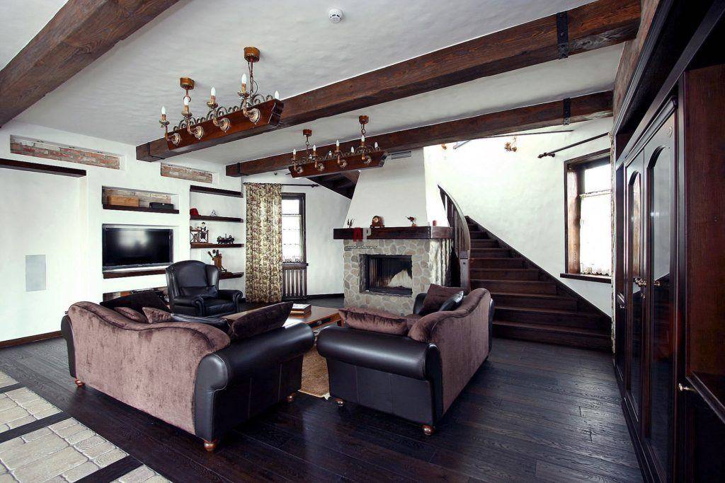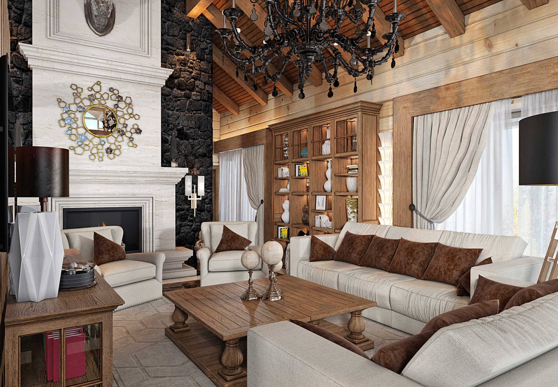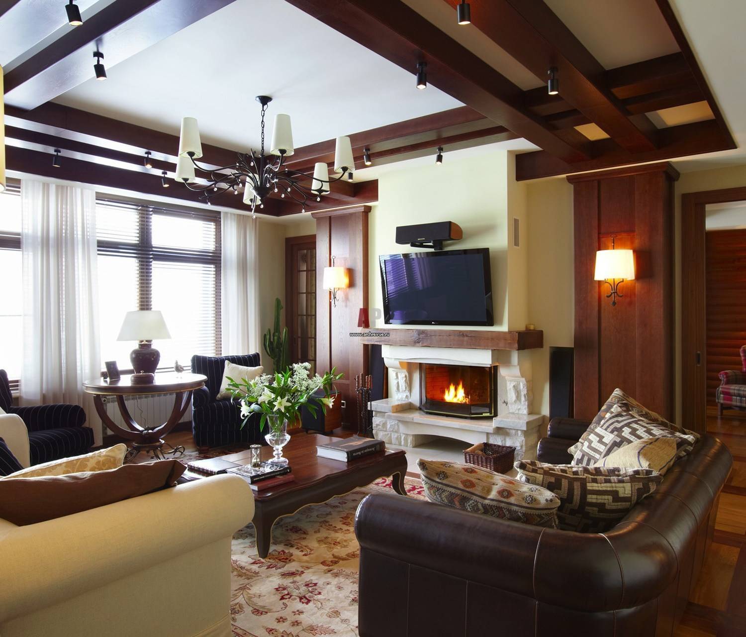 Гостиная в стиле шале — дерево и изделия ручной работы