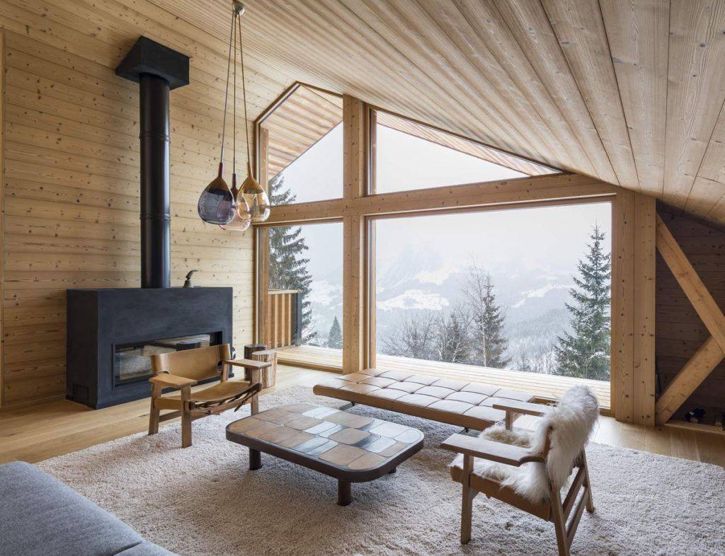 Интерьеры гостиных шале характеризуются функциональностью. Они обычно большие, просторные и светлые. Дом горца должен включать вместительную кухню (часто совмещенную со столовой, оборудованную большим столом из сырого дерева), уютную спальную и гостиную зону.