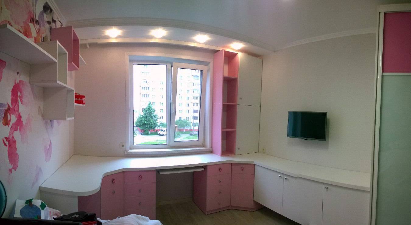 - Работа / учеба. Даже если ребенок дошкольник, место для лепки и рисования лишним не будет. А потом оно переоборудуется в учебный стол: кстати, широкая столешница может быть продолжением подоконника. Для 10-метровых комнат хороши модульные системы, в которых можно разместить все необходимое: лампу, учебники и тетради, письменные принадлежности и так далее.