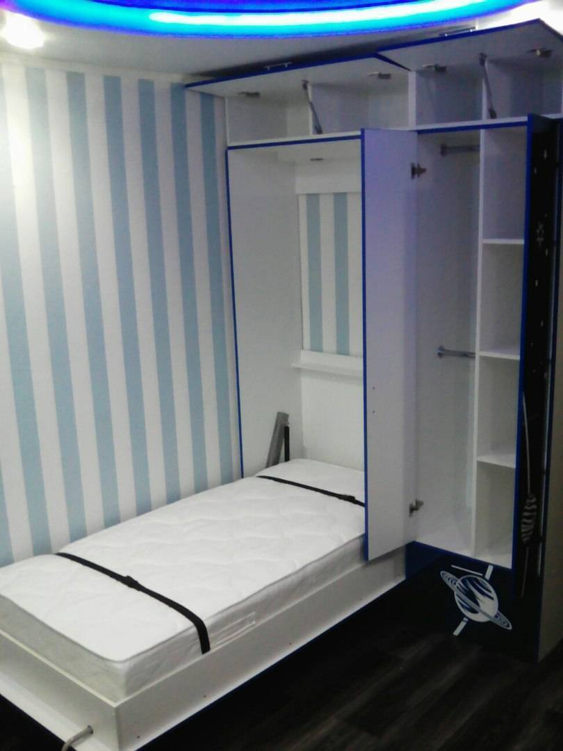 Если у вас двое подросших деток, обратите внимание на двухъярусные, складные, раздвижные, выдвижные, откидные кровати. Они помогут увеличить свободное пространство в комнате при необходимости