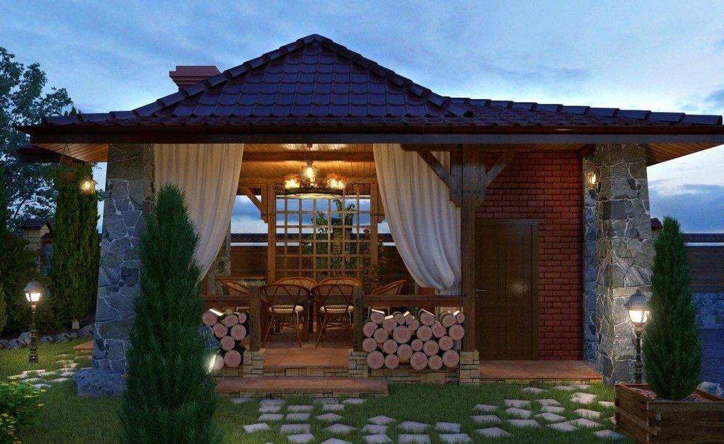 Если описывать одним словом, тогда натуральные. В первую очередь, это древесина — брёвна и брус. Так можно использовать камень и кирпич (он выкрашивается в тёмные тона), особенно это актуально для строительства мангала или печки.