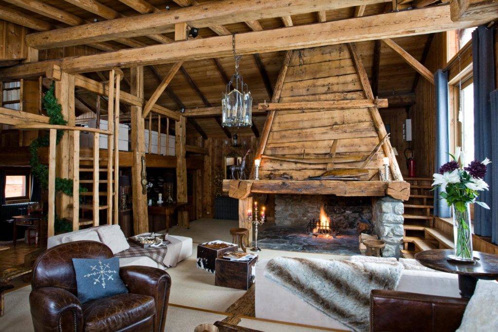Основной изюминкой и украшением не только гостиной, но и всего дома в «шале» становится камин. Исторически, именно возле огня по вечерам в альпийском доме собиралась семья за разговорами. Он может отдалённо напоминать камин обедневшего барона из романского замка. Но нельзя забывать, что важна не столь эстетика, как и обогрев комнаты.