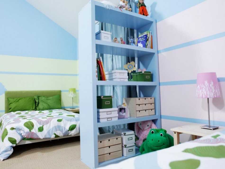 - Можно выделить личную территорию каждому из детей при помощи ширм, перегородок, шкафов, плотных штор или других приспособлений.