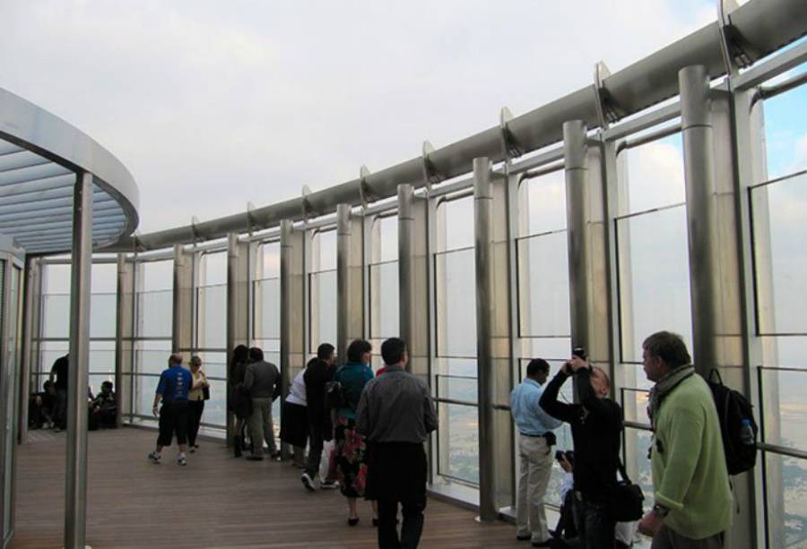 Обзорная площадка самого высокого небоскреба в мире расположена на высоте 452,1 метра, а общий вес всего алюминия, который используется в башне, равен весу 5 самолетов A380.
