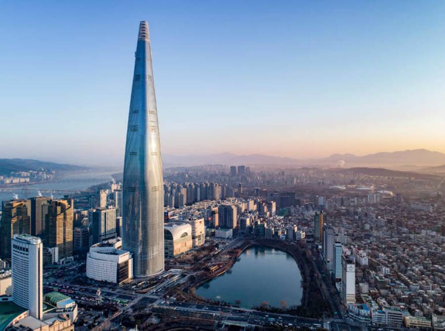 Башня построена рядом с Всемирным парком Лотте недалеко от реки Хан. И парк, и река прекрасно видны с четырех смотровых площадок, расположенных на последних этажах небоскреба.
