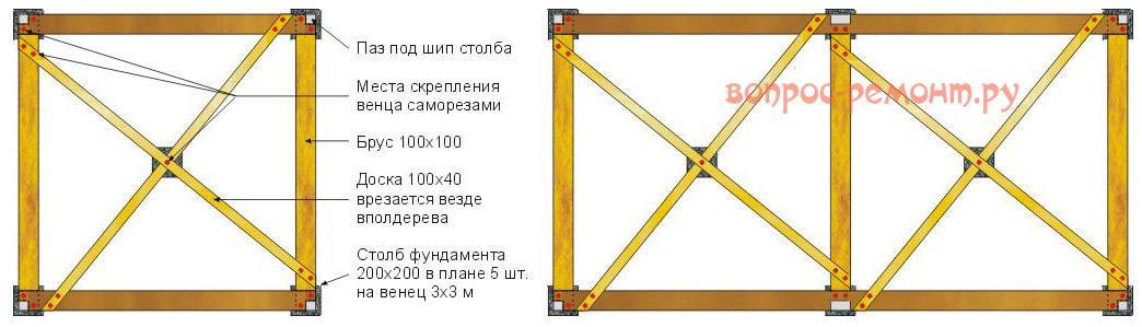 - Рамы только брусовые 100х100 мм; сборные из досок не годятся.