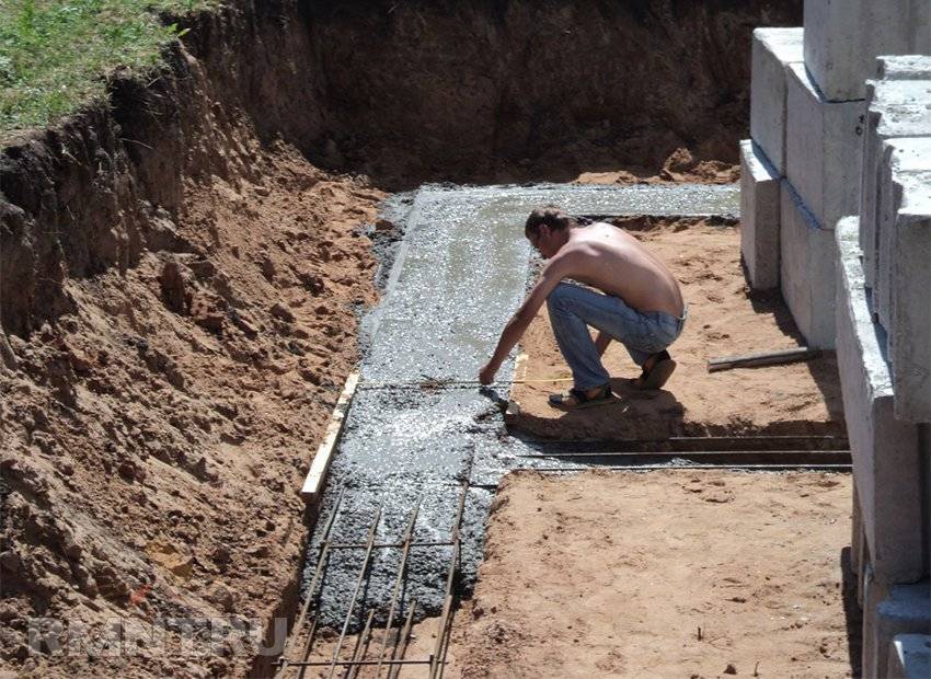 Подошву, на которой в дальнейшем будут установлены блоки ФБС, можно изготовить двумя способами: