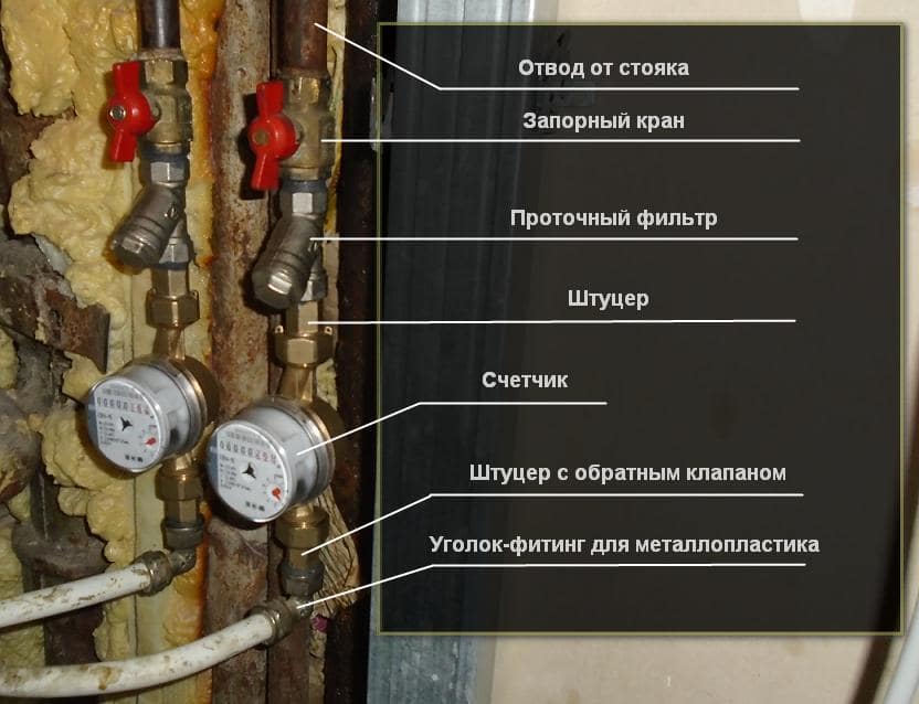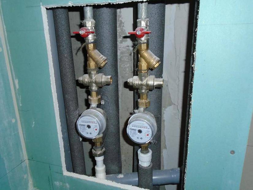- далее разводка. Установка счетчиков на воду с минимальным количеством элементов