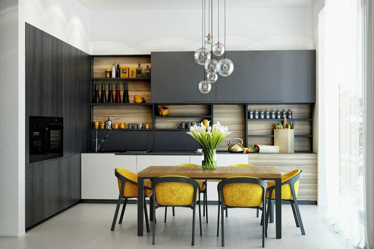 - современный и стильный дизайн кухни;