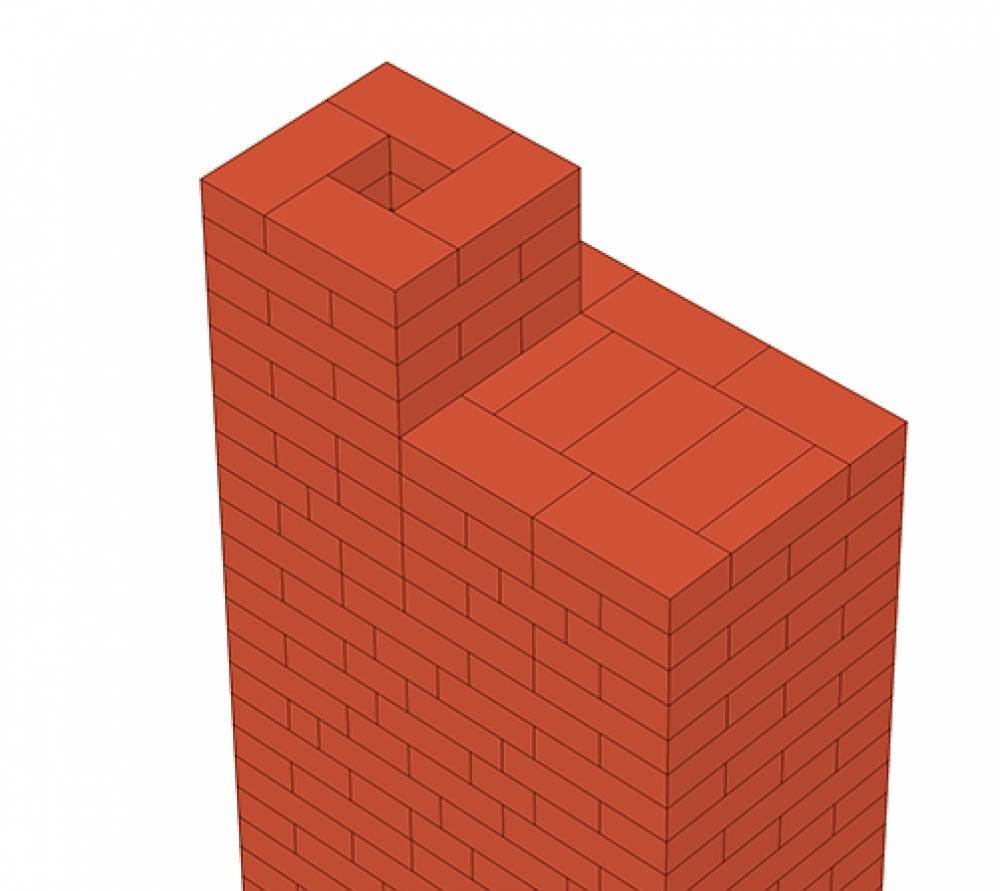 25-28 ряды — производится перекрытие каналов печи. В 28 ряду формируется отверстие дымохода.