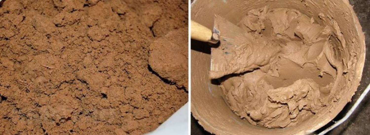 Для проверки качества приготовленной смеси, достаточно сдвинуть ее мастерком в сторону. Если след остается гладкий, без рваных участков, значит смесь приготовлена идеально. Если раствору не хватает густоты, и он растекается, то в этом случае необходимо добавить еще глины.
