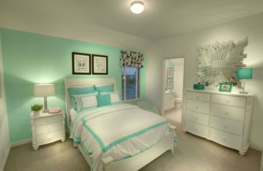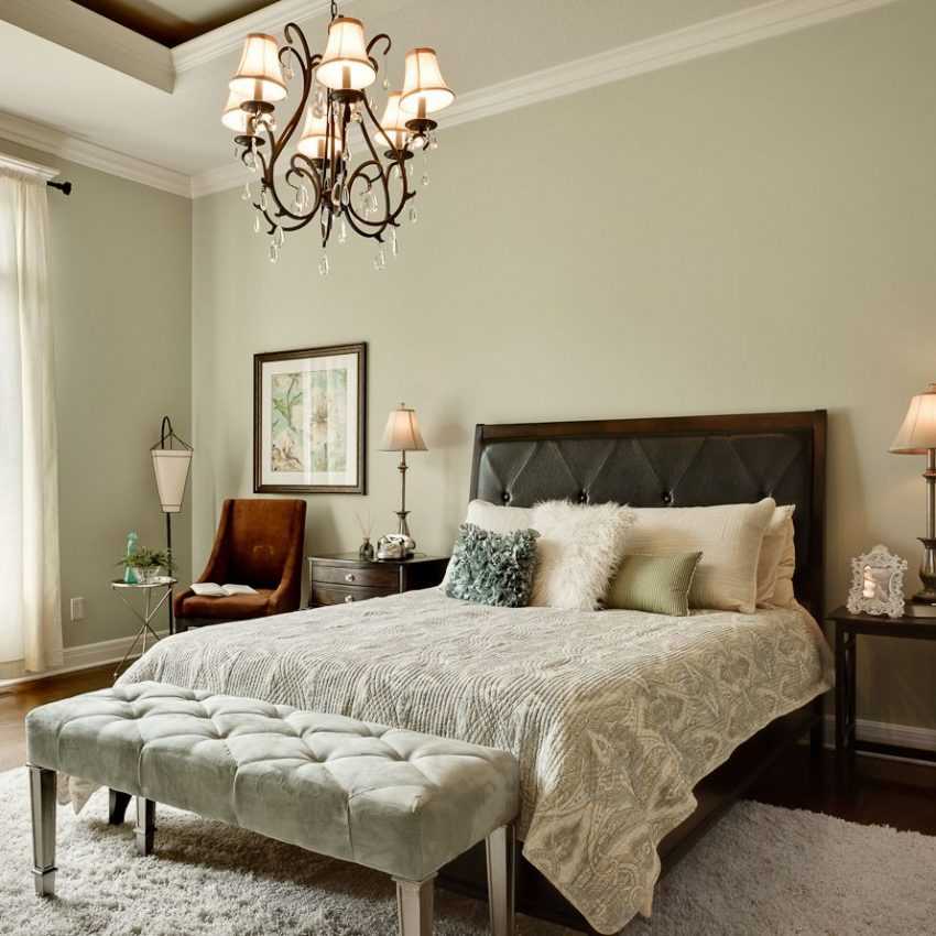 Мятный цвет может выглядеть совершенно по-разному. Он имеет более теплые, приглушенные оттенки и светлые, яркие, которые придадут холода спальне. Большое значение имеет сопутствующий цвет, украшающий спальню. Чем контрастнее он будет, тем качественнее себя проявит мята.