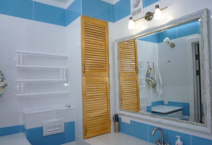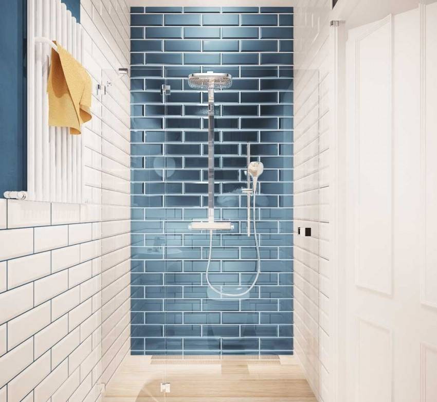 Для маленьких ванных комнат синий цвет с легкостью можно дополнять белым.