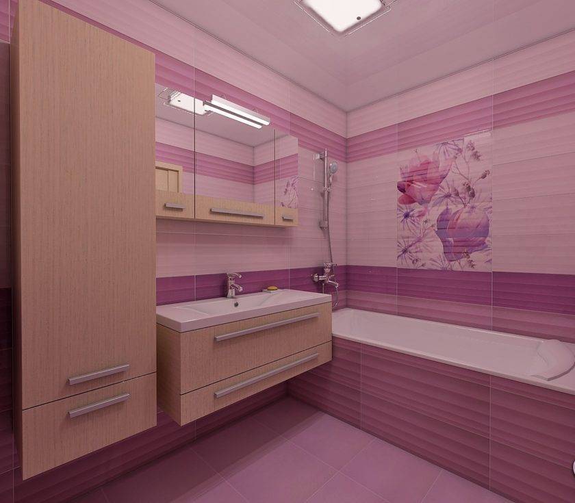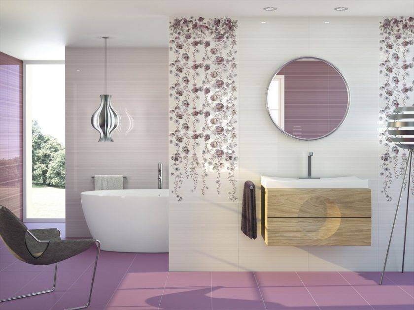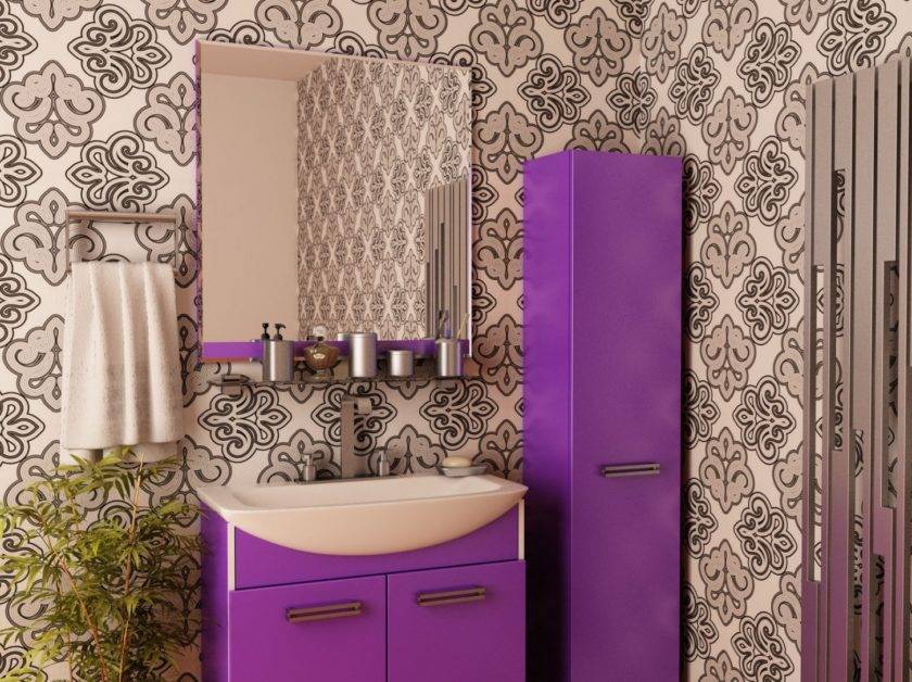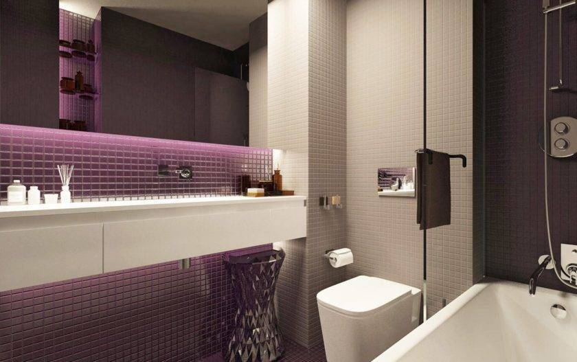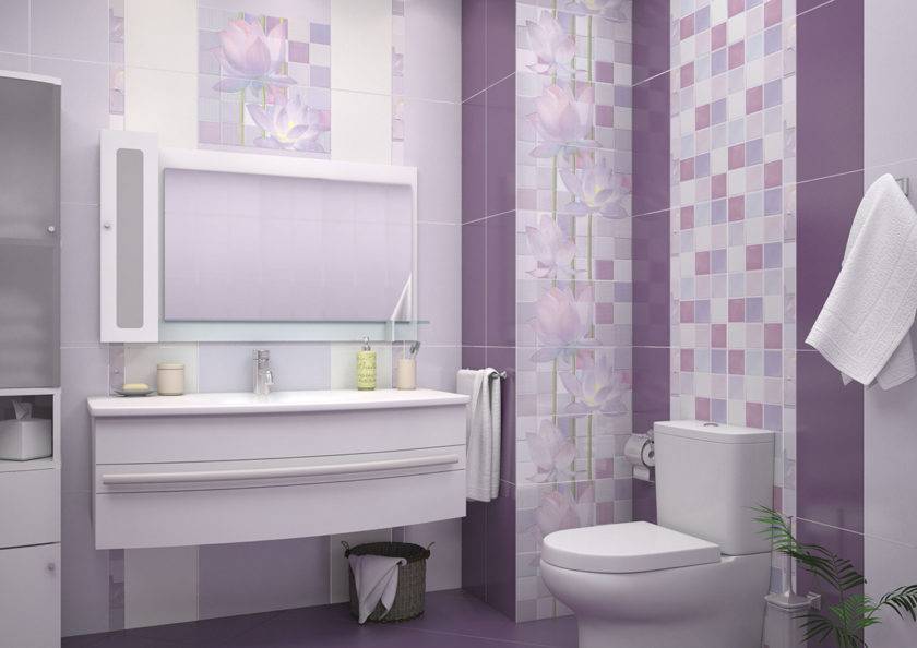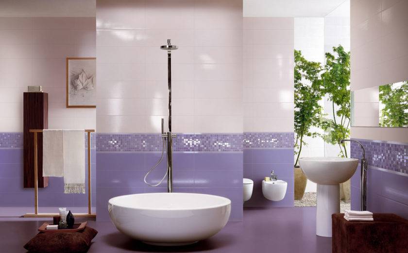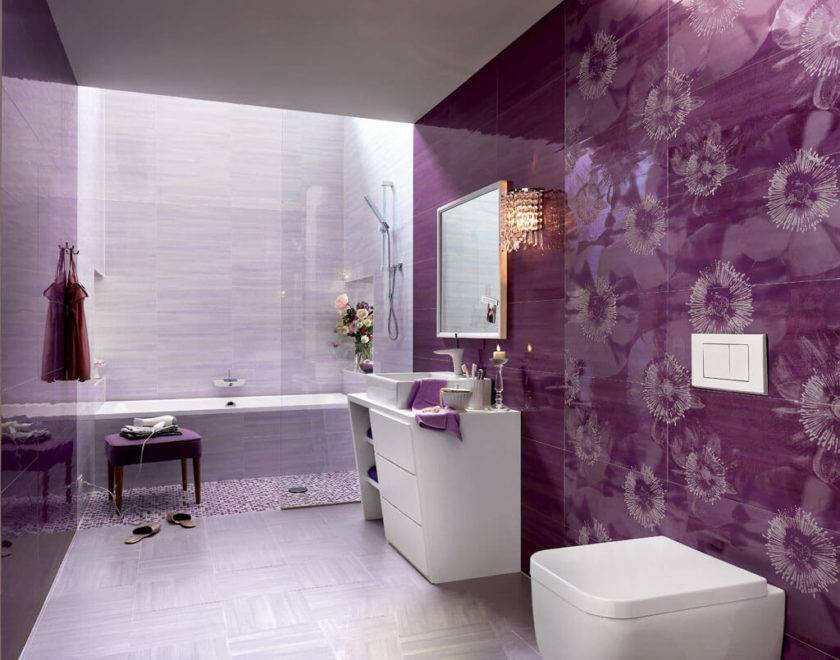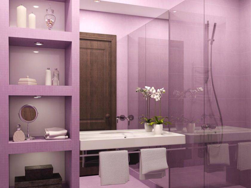 Подобно голубому, оранжевому и желтому цвету, у сиреневого не так много оттенков. Поэтому в отделке ванных комнат его используют с близкородственными цветами или сочетают тона разной насыщенности.