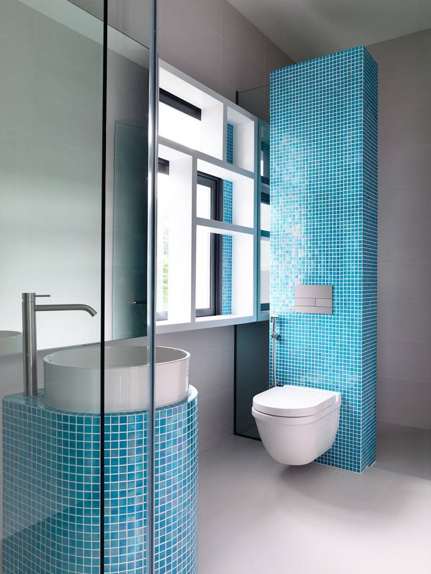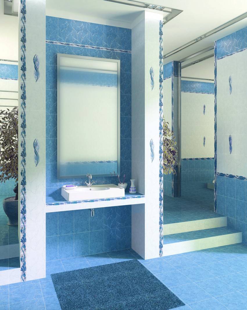 Максимальный эффект ванные комнаты производят, если при тонировании синим применять также зонирование (разделение на различные зоны).