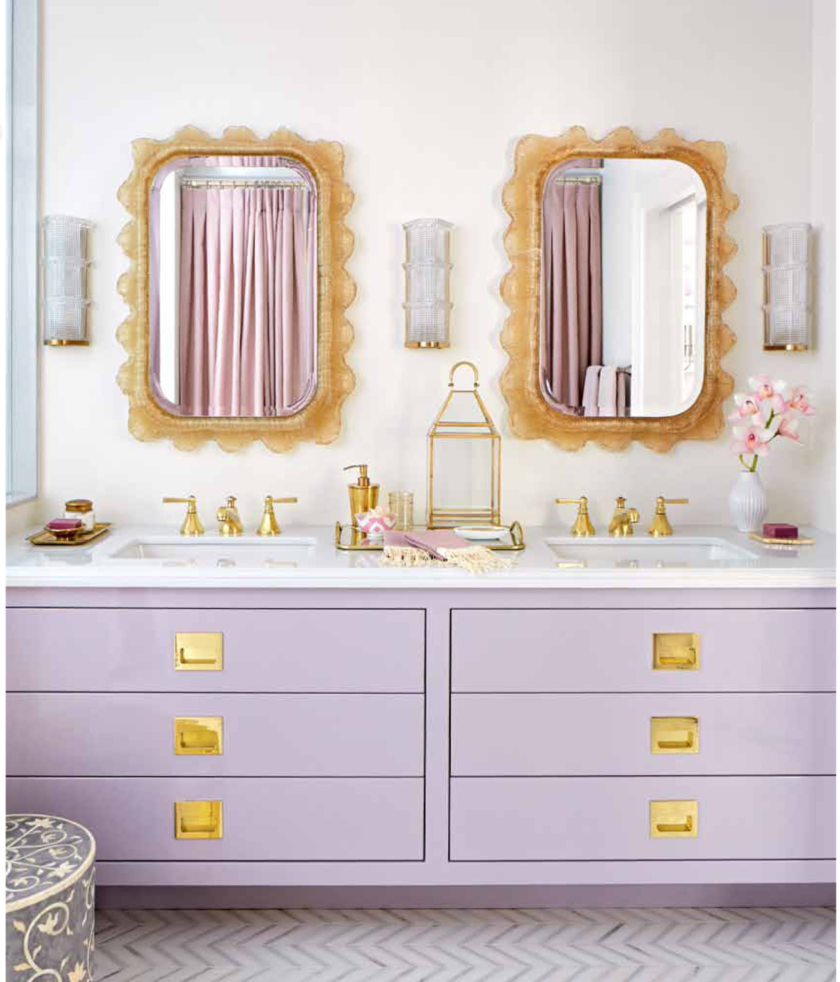 Сиреневый в интерьерах ванной редко соседствует с черным цветом, поскольку для элегантного контраста гораздо уместнее: