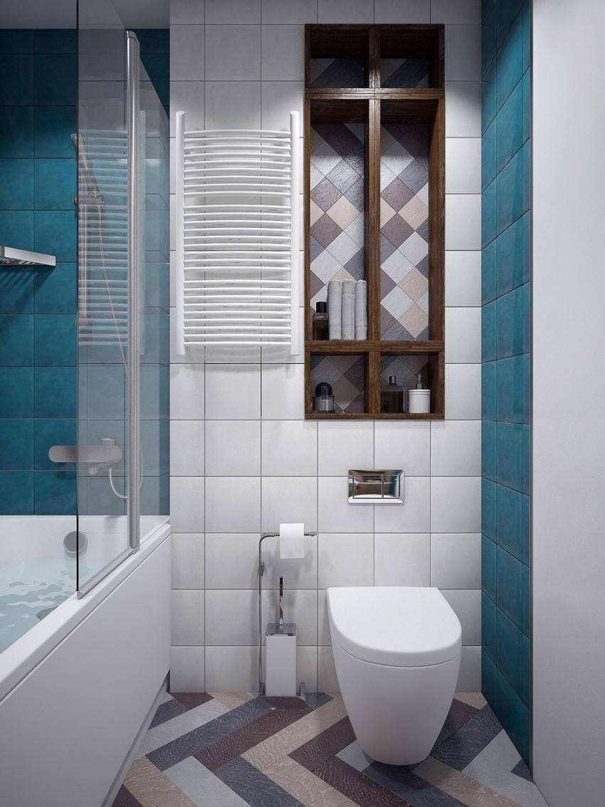 Природные и анималистичные узоры, использование в дизайне синей ванной комнаты мозаик стиля модерн;