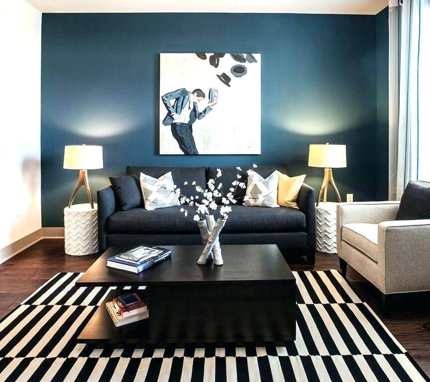 Если вы решили использовать в отделке стен глубокие синие оттенки, то делать это, как ни странно, следует в небольших помещениях. Границы визуально растворяются, словно в ночной дымке, и гостиная выглядит уютной.