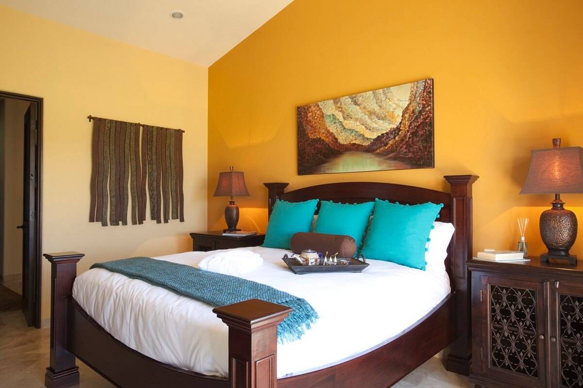Многие дизайнеры используют бирюзовый, сапфировый или голубой цвет в своих проектах из-за ассоциации с тишиной и спокойствием. Насыщенный синий оттенок позволяет создать интригующую таинственную атмосферу, которая отлично подходит для спальни. Заранее решите, какого эффекта хотите добиться, и только после этого приступайте к ремонту квартиры.