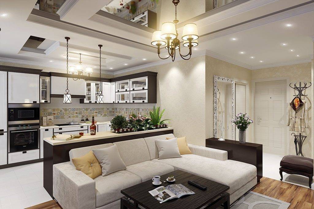 Дизайн кухни-гостиной 20 кв. м: мебель и аксессуары