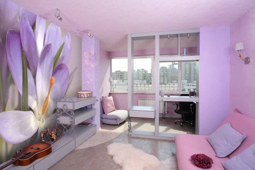 сочетание фиолетового и розового цвета в детской комнате девочки