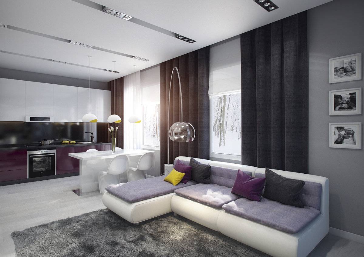 Обставляя небольшую гостиную с кухней 20 кв. м, постарайтесь максимально визуально увеличить пространство. Используйте светлые цвета, которые не только помогут вам почувствовать, что интерьер более просторен и чист.