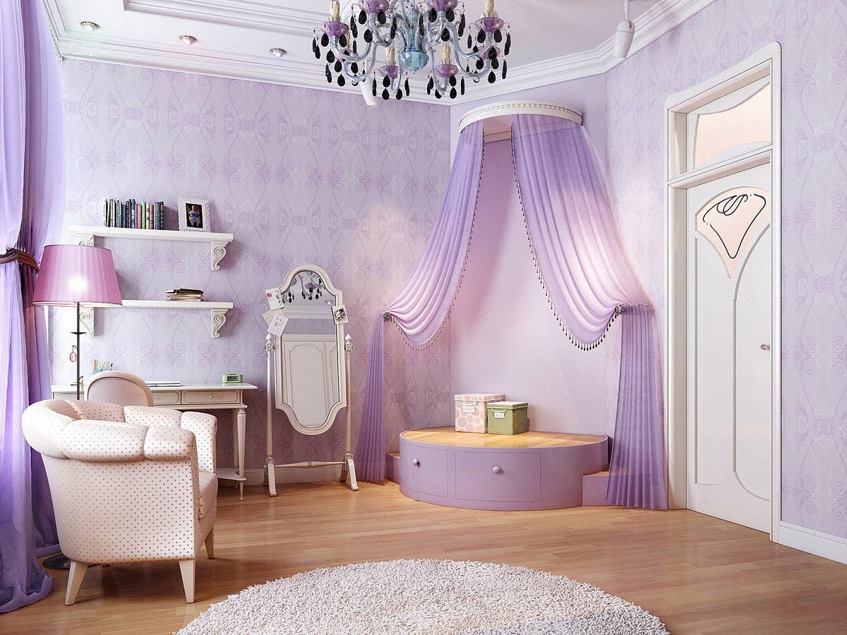 Сиреневый положительно влияет на психическое и эмоциональное состояние человека, поэтому сиреневые обои — это оптимальное решение для детской комнаты. Зонирование с помощью обоев также отличное решение: так можно разделить игровую зону и зону сна. Дети вырастут, а этот цвет стен можно будет не менять. Дизайнеры советуют использовать сиренево-зеленые обои (зеленый — цвет релакса и душевного спокойствия).