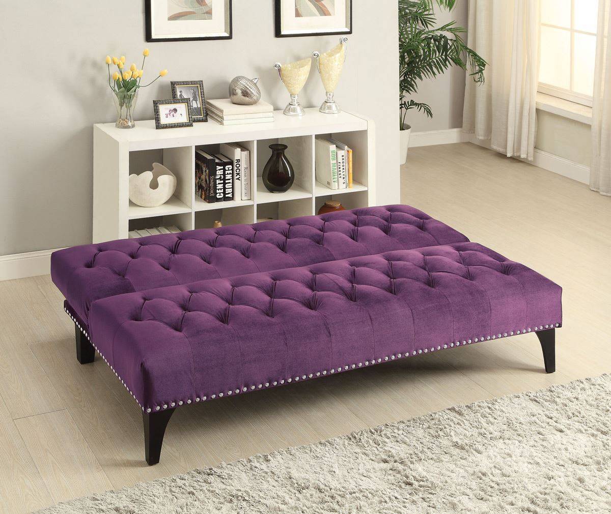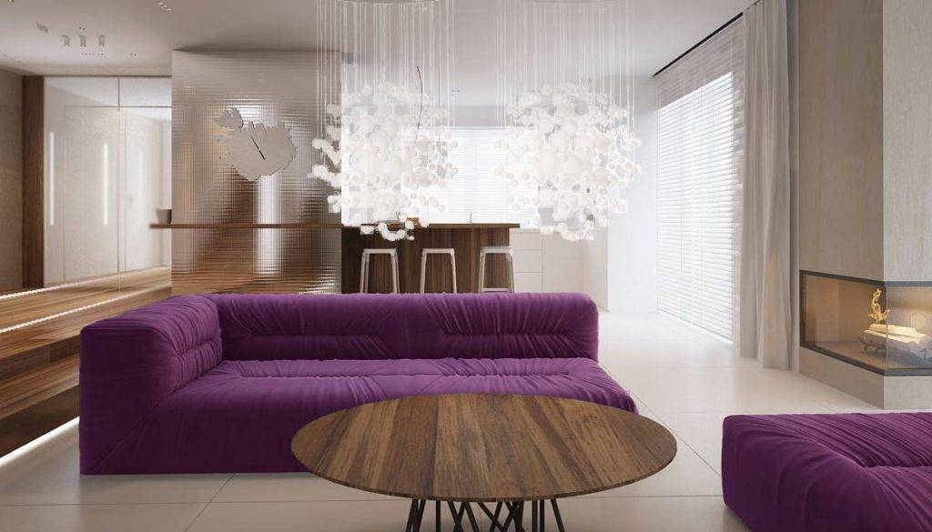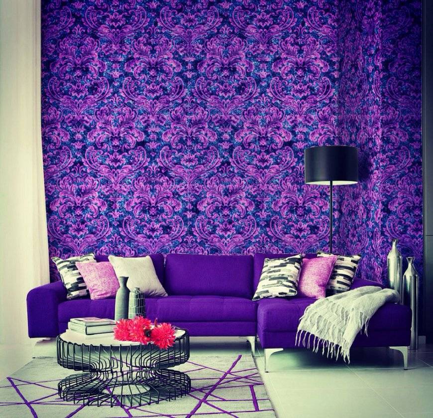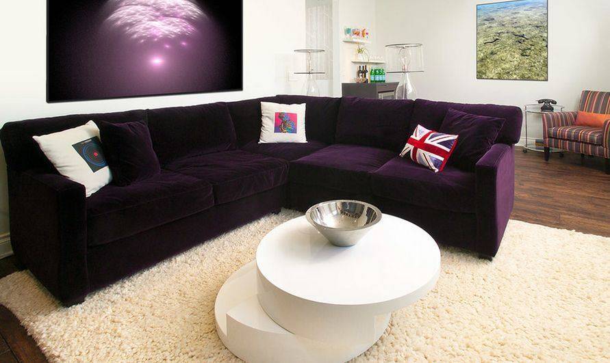 Фиолетовый диван в интерьере может выглядеть весьма свежо и органично.