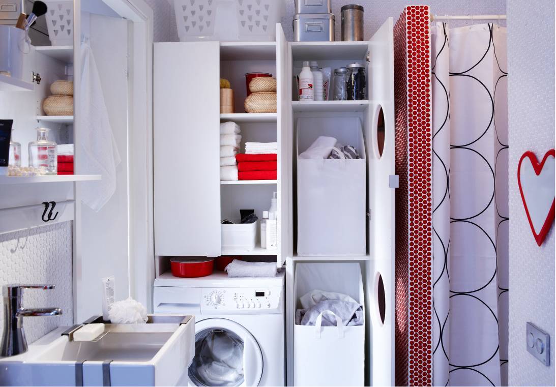 Если установить шкаф над стиралкой, из плюсов вы получите следующее: