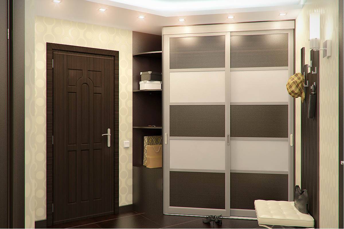 Идеальным решением будет поставить в коридор шкаф-купе. Он отличается от других видов шкафов конструкцией дверей. Она такая же, как в вагонах купе поездов, с использованием роликового механизма.