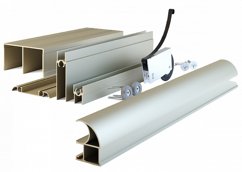 - Материал, из которого изготовлены профили и ролики. Длительный срок эксплуатации гарантируется только направляющим, сделанным из качественной арматуры. Это могут быть полозья с ребром жесткости, выполненные из первичного сплава алюминия. Не сомневайтесь, прослужат они долго и верно. При выборе роликов раздвижных дверок отдайте предпочтение металлу или покрытому тефлоном пластику. Пластмассовые колёсики придут в негодность в первый год службы.