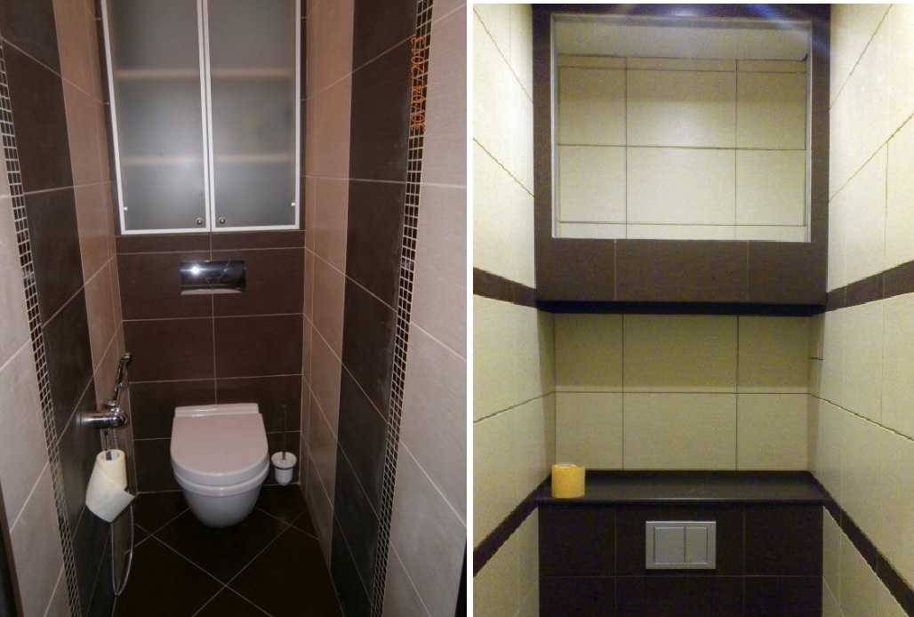 - выложить нишу для инсталляции такой же плиткой, как и стены, в результате чего детали шкафа не будут зрительно выделяться;