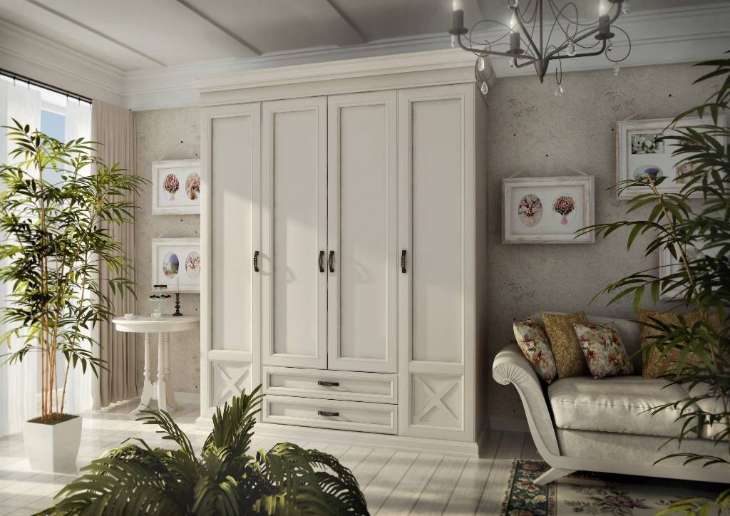 - приемлемая стоимость конструкции (четырёхстворчатые изделия с распашными дверями значительно дешевле аналогичного шкафа купе).