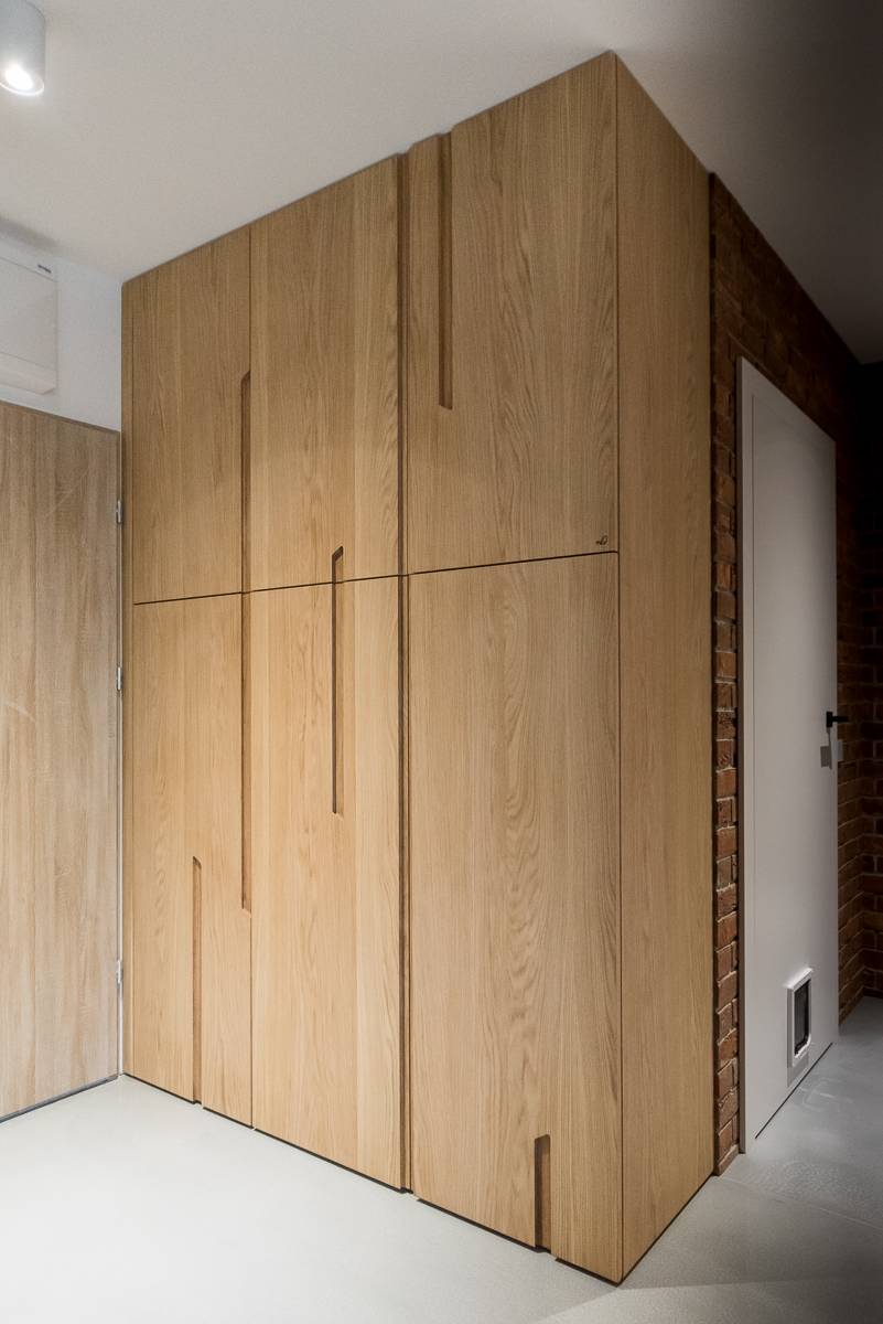 | Рис. 34. Пример удачного сочетания маленьких черных ручек рейлингов с дизайном шкафа в прихожую |