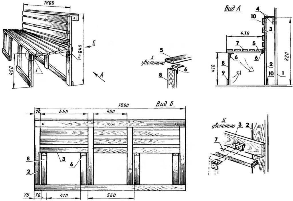 Приведем для примера несколько эскизов для изготовления деревянных скамеек.