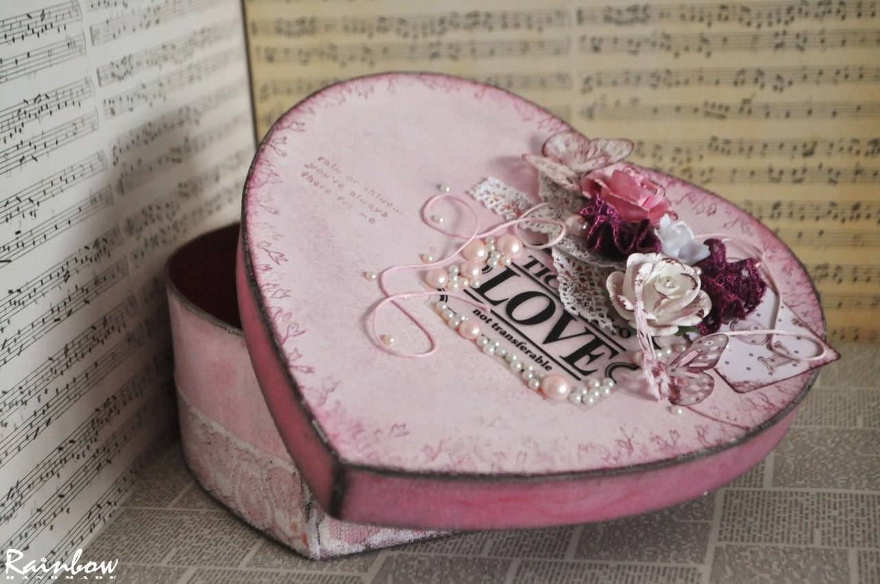 Оригинальная форма шкатулки понравится многим девушкам, к тому же смастерить такую поделку можно самостоятельно. Все что вам потребуется – это плотный картон, клей и материал для декорирования.