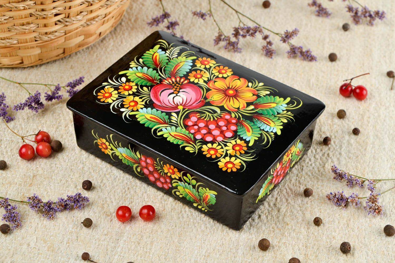 Наиболее подходящими для создания узоров являются деревянные стенки шкатулки. В редких случаях узорами украшают коробки или изделия из картона. Украшать узорами следует используя роспись красками, в том числе и масляными. Узоры выполняются в разных стилях, могут создаваться как при помощи трафаретов, так и без них. Наиболее популярными являются узоры, выжженные на дереве. Выжигать дерево следует лишь тем, кто имеет в этом определенный опыт. Допускать к этому процессу детей дошкольного возраста не рекомендуется, во избежание травм. Процесс выжигания проходит по следующему принципу: