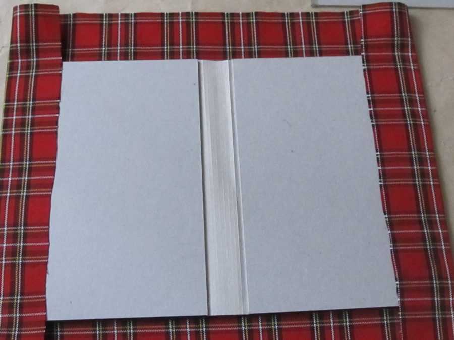 Картонные прямоугольники надо наложить на обложку сверху, оставив сверху, снизу и сбоку по сантиметру.