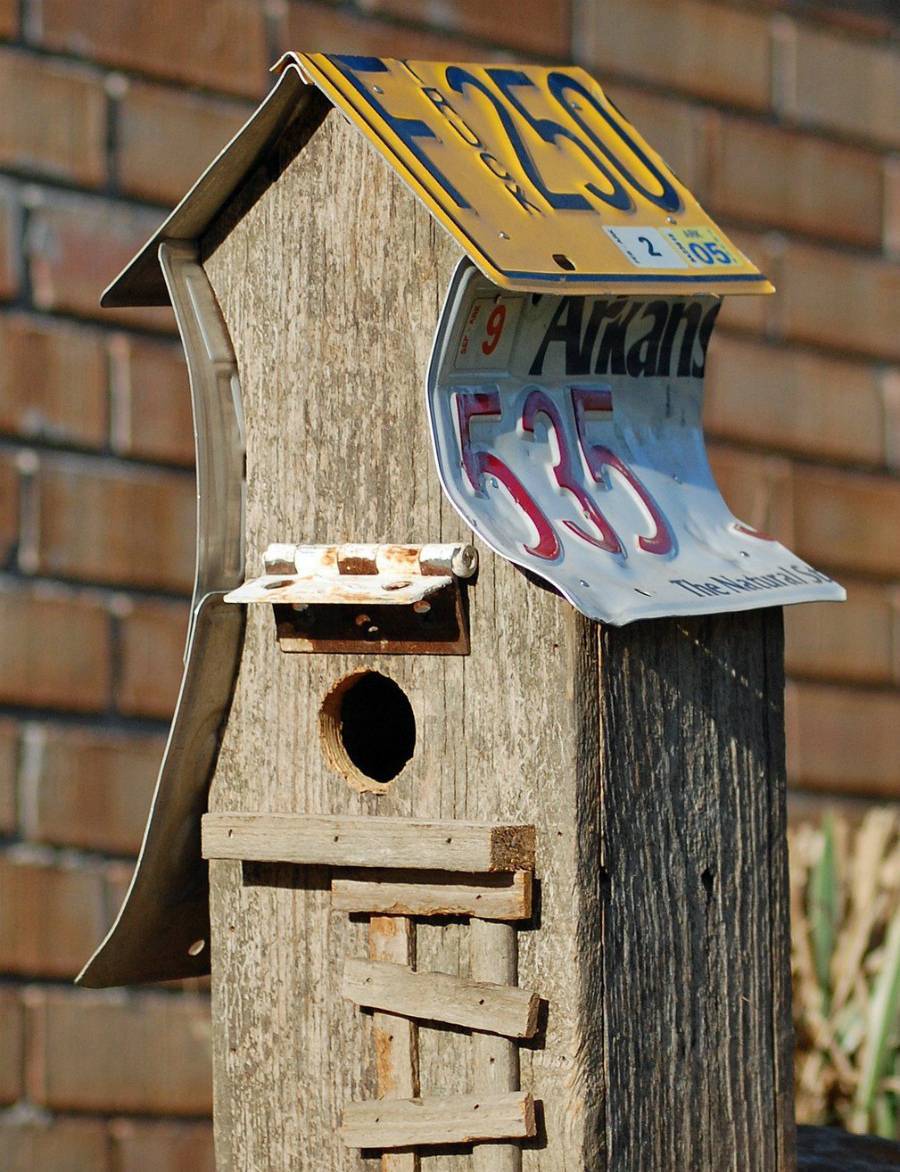 Не самый лучший вариант для моделирования скворечника, поскольку слишком пористая структура такого материала не обладает той степенью устойчивости, которая обеспечит защиту от внешнего природного воздействия: влаги, лучей солнца, колебаний температуры. Это не говоря уже о токсичных испарениях и резком запахе формальдегидных смол, используемых в качестве связующих компонентов в изготовлении древесноволокнистых плит. Все это отпугивает птиц. Картон. Рассчитан на очень непродолжительное пребывание в нем пернатых, ведь элементарное намокание вследствие дождя или снега нанесет непоправимый ущерб всей конструкции. Более того: дно в таких скворечниках проседает очень быстро, и если наседка выложит на нем яйца, она рискует потерять свой выводок вследствие его проваливания. К картонному материалу лучше не прибегать в изготовлении скворечника. Пластик. Бутылки из термопластика (полиэтилентерефталата) тоже малоэффективное средство для оформления птичьего гнезда. Помимо того, что пластиковая бутылка не обладает никакими тепловыми свойствами, она еще и в большинстве случаев имеет прозрачную фактуру, что и подавно не устраивает пернатых жителей. К тому же слишком легкая масса подобного скворечника способствует тому, что бутылку будет раскачивать от малейшего дуновения ветра, поэтому о прочности и устойчивости такого жилища говорить не приходится.