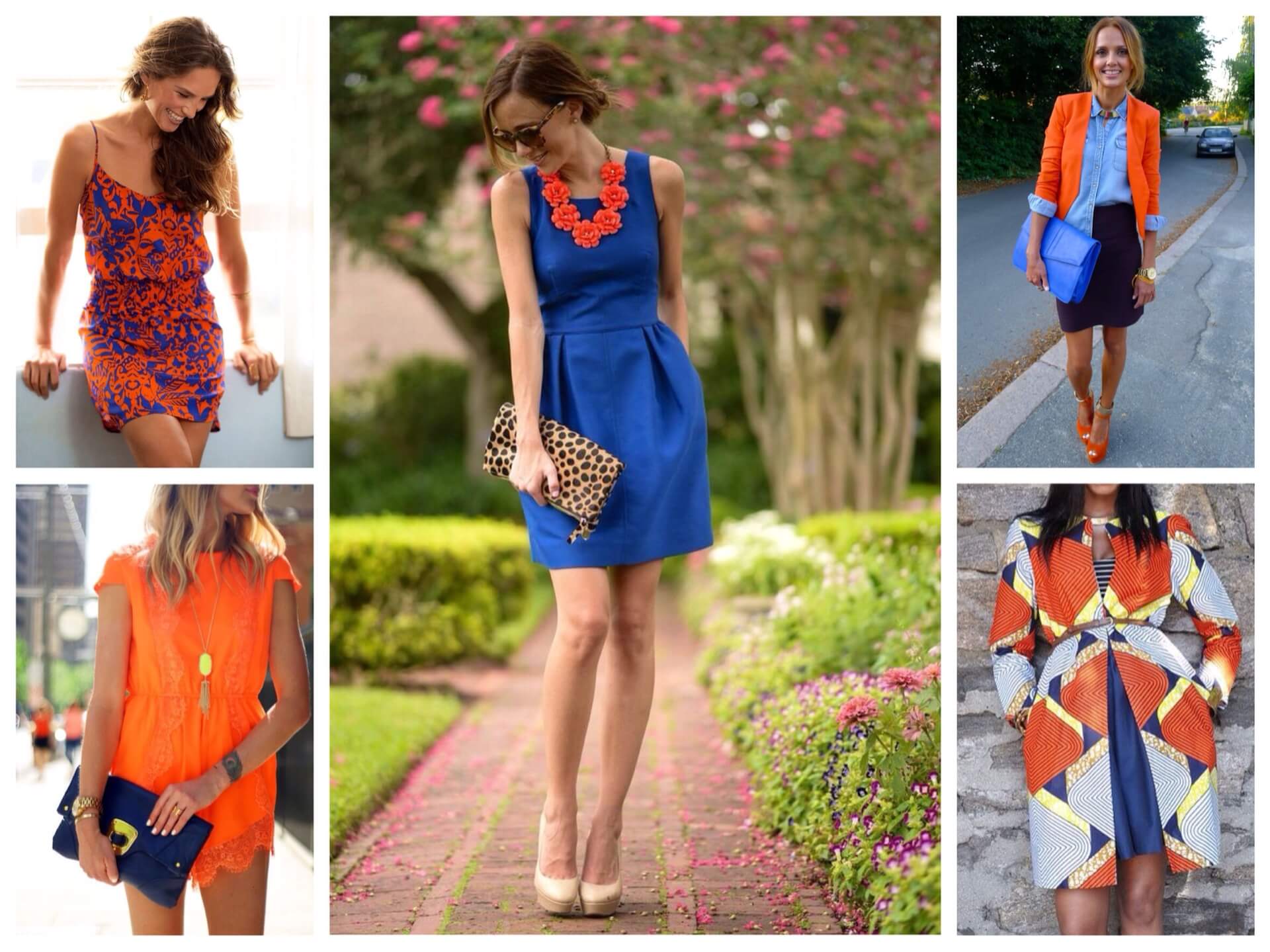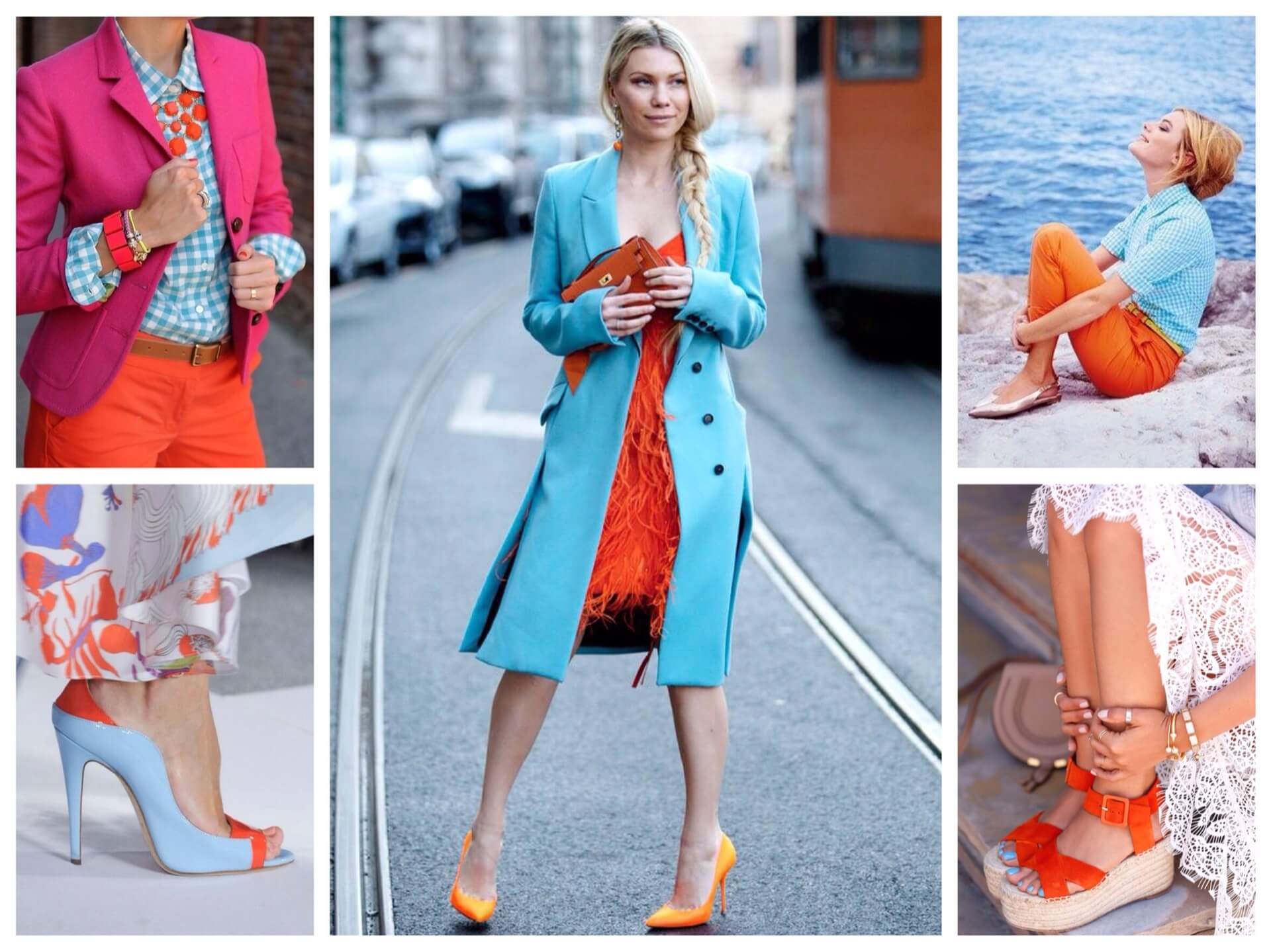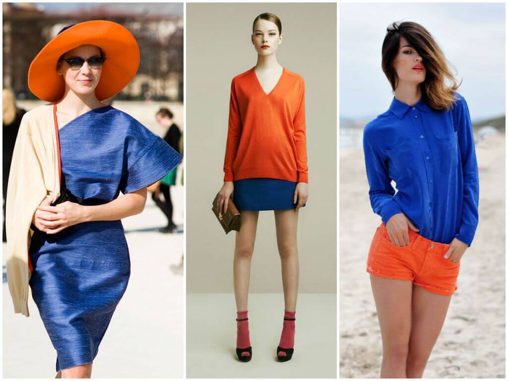Не обязательно комплиментарные оттенки должны быть основными – один из них может присутствовать в аксессуарах, головных уборах или обуви.