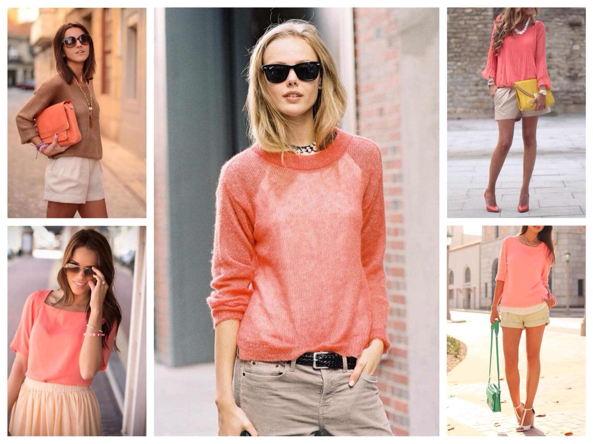 Для приглушения яркого оттенка используют розоватый беж – это формирует подходящие сочетания для повседневной носки. Третьим цветом становится белый, соседние оттенки бежевого.