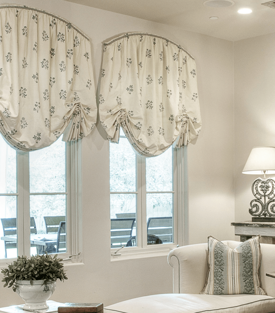 Их отличает каскадная сборка, то есть ткань присборивается кверху за счет пришитых с двух сторон лент. Это делает их аккуратными, и в то же время необычными.