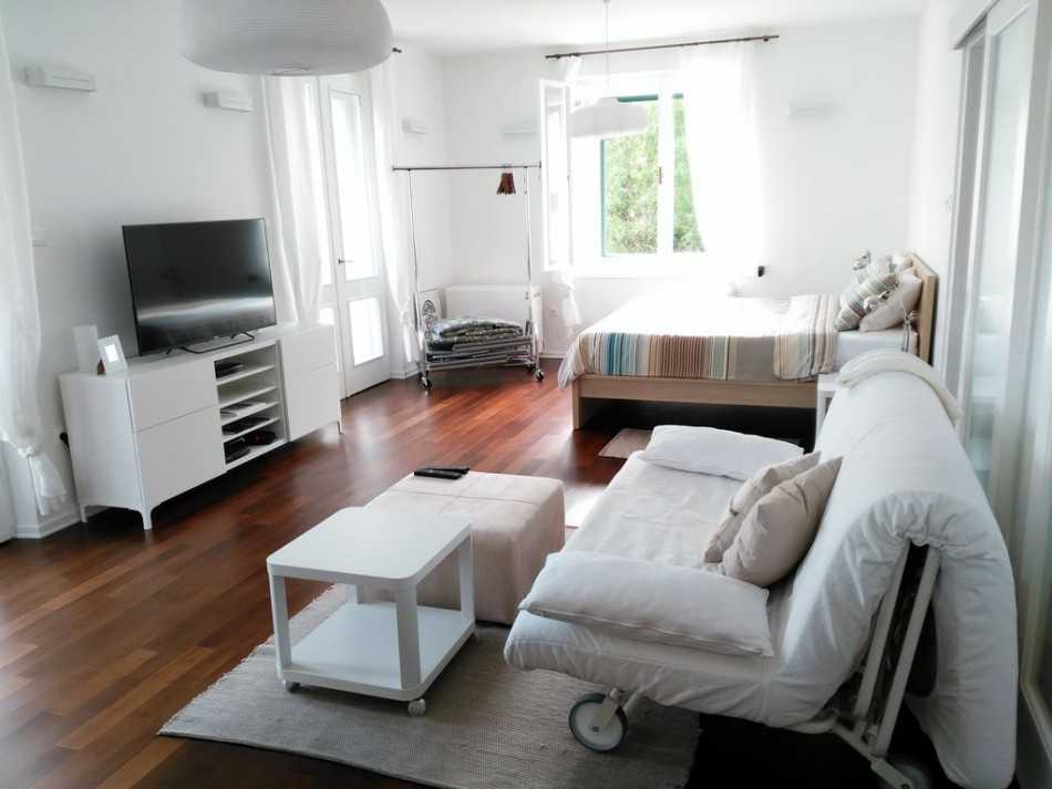 Создание однушки с относительно просторной кухней-гостиной — оптимальное решение для такой площади. В этом варианте часто спальня лишается окна. В студии добиться такого деления можно с помощью мебели или фальш-стены.
