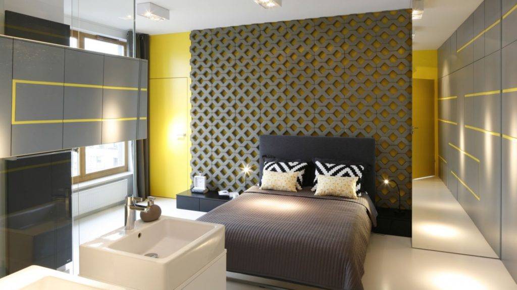 - Объединение желтого цвета с черным — создаст сильный контраст, который придаст интерьеру твердый, сильный характер, и в то же время черный не будет таким подавляющим.