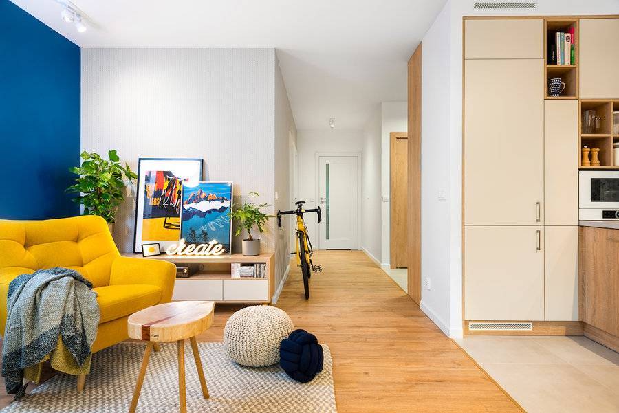 Если вам нравятся выразительные, контрастные цветовые сочетания, объедините желтый и синий. Но будьте осторожны, желательно только в дополнениях! Это решение появляется в современных схемах. Основа декора обычно белая и серая, а синие и желтые акценты делают его интересным и согревают.