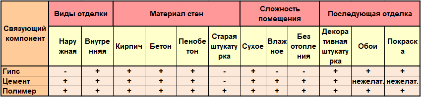 Цементная | Традиционный материал, отличается самой высокой физической прочностью и устойчивостью к влаге. Имеет низкую стоимость, рекомендуется применять под тяжелые финишные покрытия стен, в том числе и плитку из натурального камня. Может быть стартовой или финишной. |