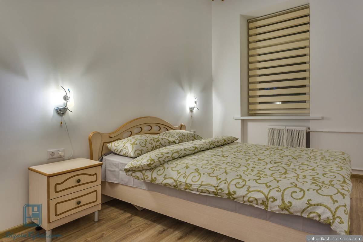 Установка прикроватной тумбочки в узкой спальне создает глубинуИсточник yandex.kz